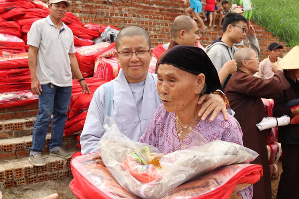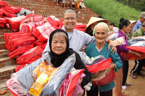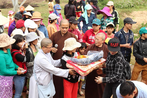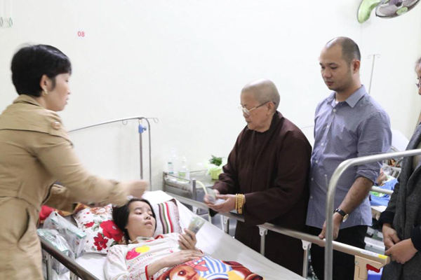 Đoàn do Ni trưởng Thích Nữ Hạnh Tâm – Trú trì chùa Phổ Hiền; SC. Thích Nữ Minh Hiền – Trưởng ban kinh tế tài chính BTS GHPGVN Tp Đà Nẵng, Tri sự chùa Phổ Hiền hướng dẫn đạo hữu Phật tử đến thăm và tặng quà cho bệnh nhân tại Trung tâm phục hồi chức năng Đà Nẵng, thăm và tặng quà cho bà con bị thiệt hại nặng trong đợt lũ cuối năm 2017 tại xã Đại Sơn, huyện Đại Lộc, tỉnh Quảng Nam. Tổng kinh phí cho 2 chuyến công tác từ thiện đầu năm 2018 là 140 triệu đồng.