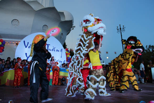 Mở đầu cho đêm hội là phần thi múa lân của 5 đội lân của các GĐPT, khối phố Hòa Mỹ và phường Hòa Minh. Đêm hội còn có những tiết mục múa rối, văn nghệ, phá cổ.