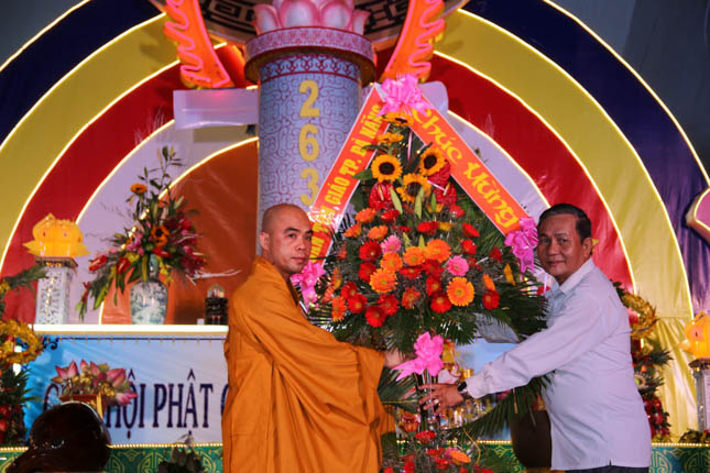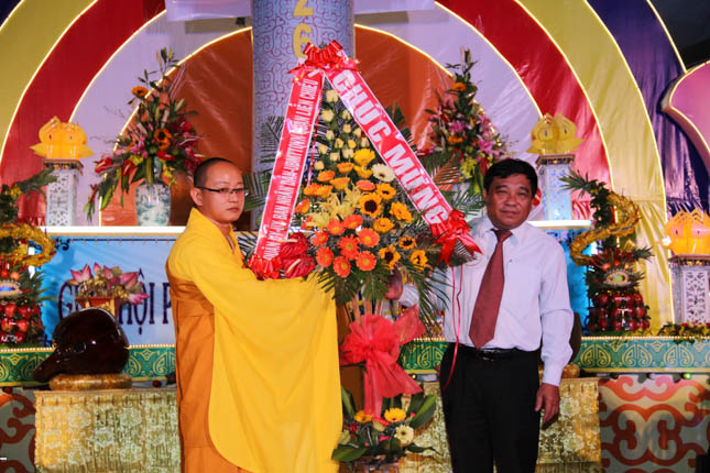 Đại biểu các cấp chính quyền đã gửi tặng những lẵng hoa tươi thắm chúac mừng BTS và đạo hữu Phật tử Phật giáo quận Liên Chiểu nhân dịp Đại lễ Phật đản PL.2559 – DL.2015.