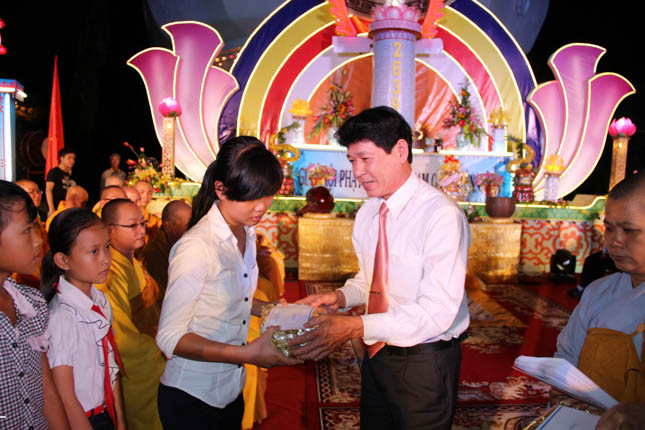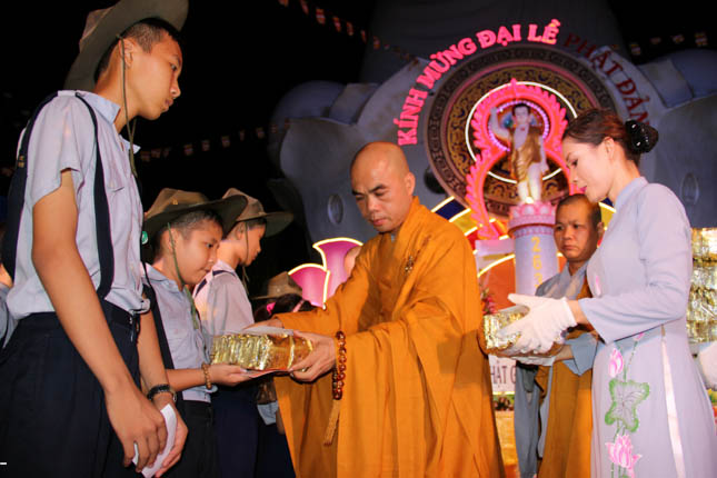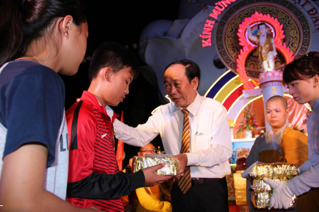 Đại lễ Phật đản năm nay trùng với ngày Quốc tế thiếu nhi 1/6, cũng trong buổi lễ trọng đại này, BTS GHPGVN đã trao tặng 100 phần quà trị giá 500.000đ/phần cho các em học sinh, sinh viên có hoàn cảnh khó khăn trên địa bàn quận.