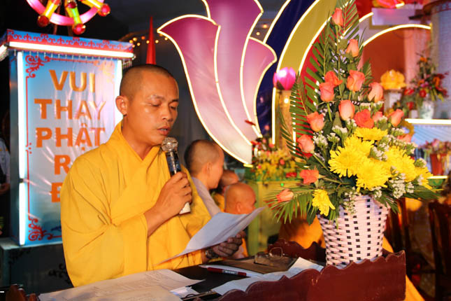 Quang lâm chứng minh và tham dự Đại lễ Phật đản của quận Liên Chiểu có HT. Thích Từ Tánh – UV HĐTS GHPGVN, Phó BTS kiêm Trưởng ban GDTN GHPGVN Tp Đà Nẵng; ĐĐ. Thích Chúc Tín – UVTT BTS GHPGVN Tp Đà Nẵng, Trưởng BTS GHPGVN quận Liên Chiểu; ĐĐ. Thích Pháp Bảo – Phó trưởng BTS GHPGVN quận Liên Chiểu; ĐĐ. Thích Thanh Nguyên – Phó trưởng BTS GHPGVN quận Liên Chiểu; Ni trưởng Thích Nữ Tịnh Đức – Phó trưởng BTS GHPGVN quận Liên Chiểu.