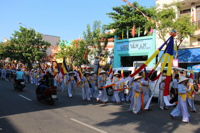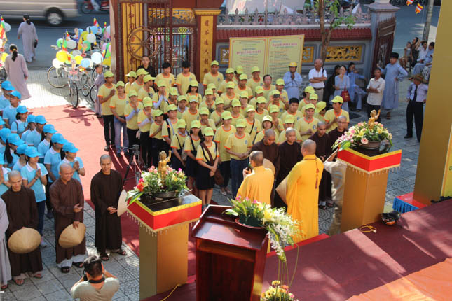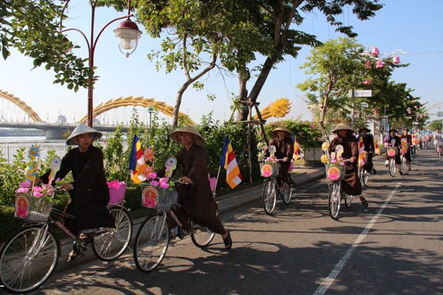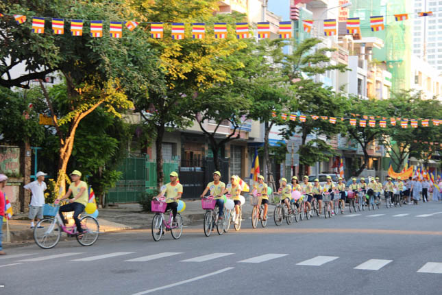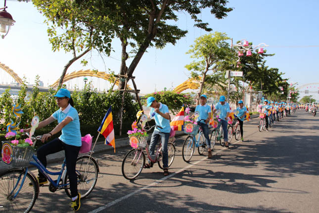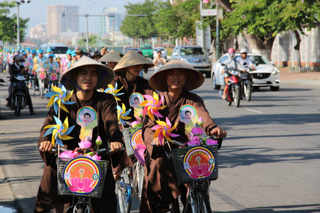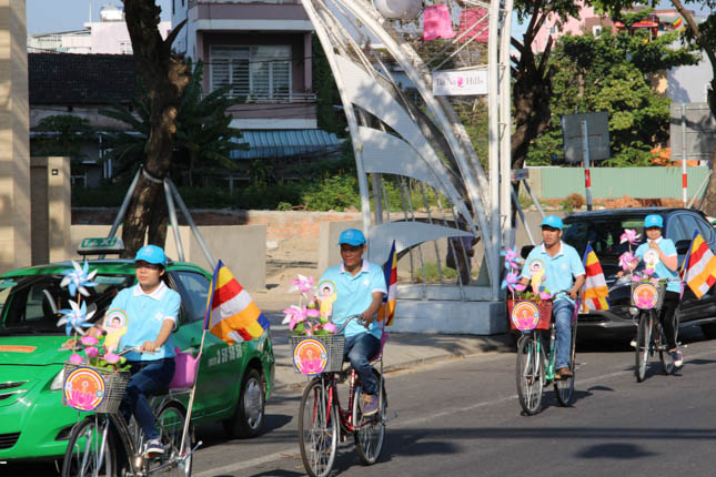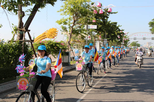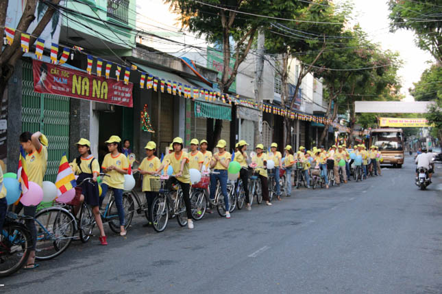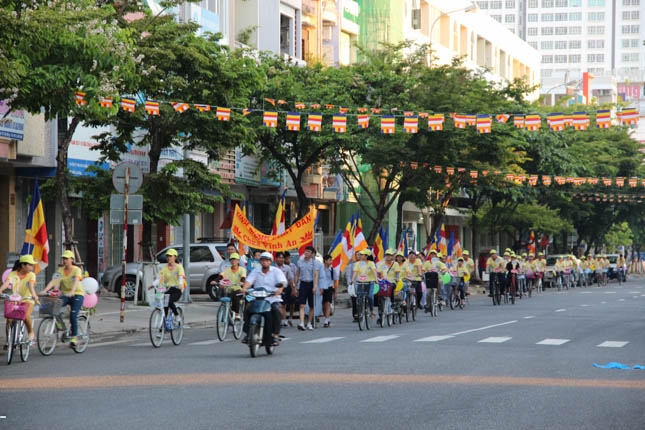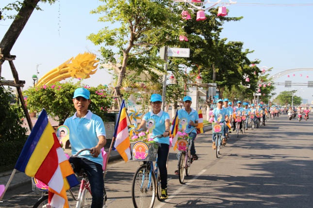 Kết thúc buổi lễ, 100 chiếc xe đạp được tôn trí tượng Đức Phật đản sanh, cờ hoa rực rỡ do các em đoàn sinh GĐPT và CLB Hoa Tình Thương của 2 chùa Tân Thành, Kỳ Viên đã diễu hành qua các đường phố chính của Tp Đà Nẵng.