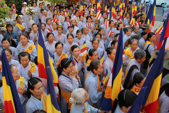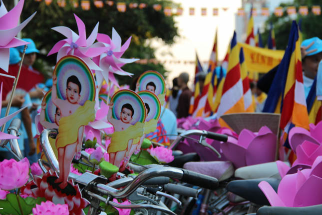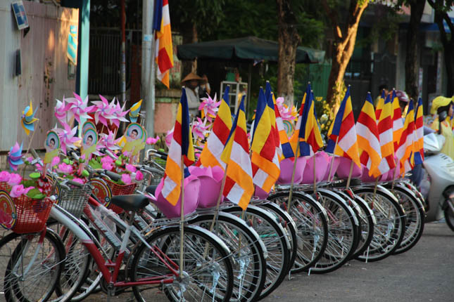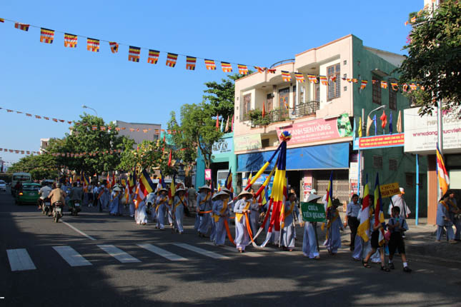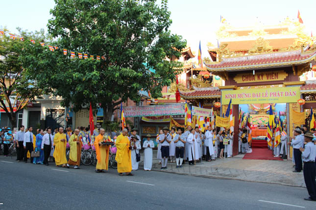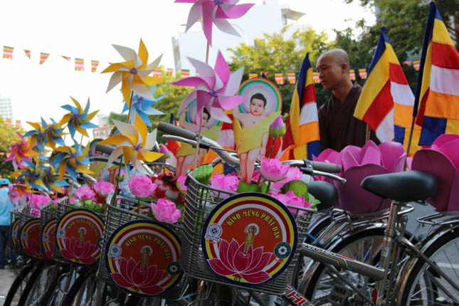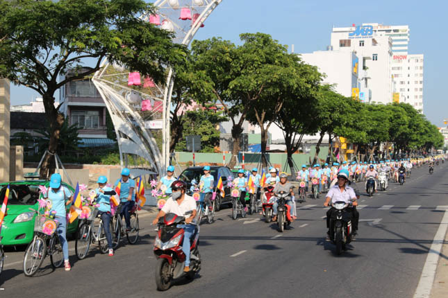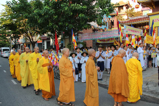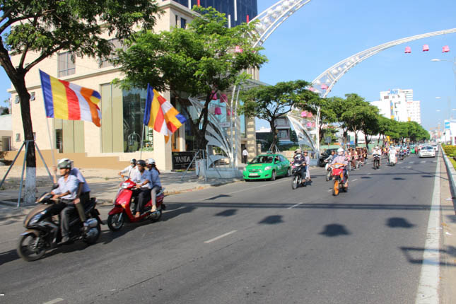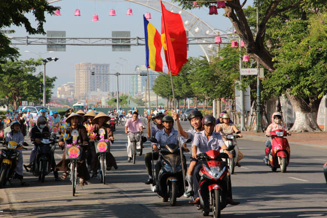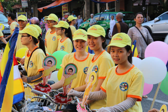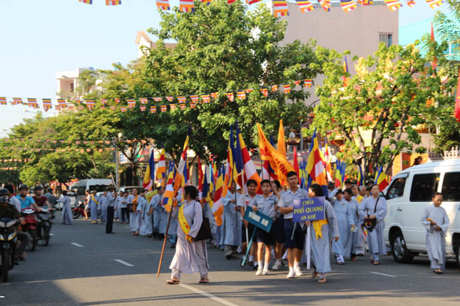 Kết thúc buổi lễ, 100 chiếc xe đạp được tôn trí tượng Đức Phật đản sanh, cờ hoa rực rỡ do các em đoàn sinh GĐPT và CLB Hoa Tình Thương của 2 chùa Tân Thành, Kỳ Viên đã diễu hành qua các đường phố chính của Tp Đà Nẵng.