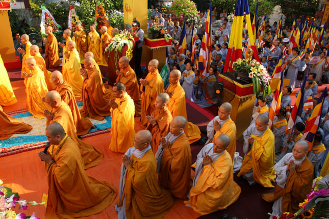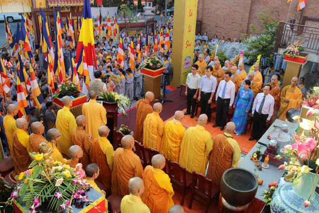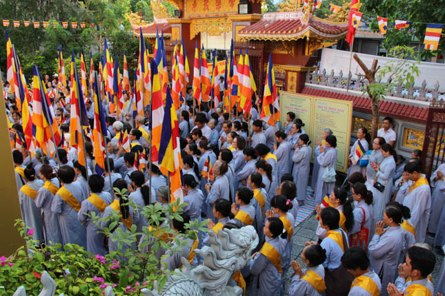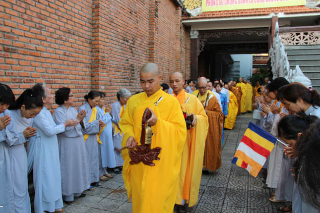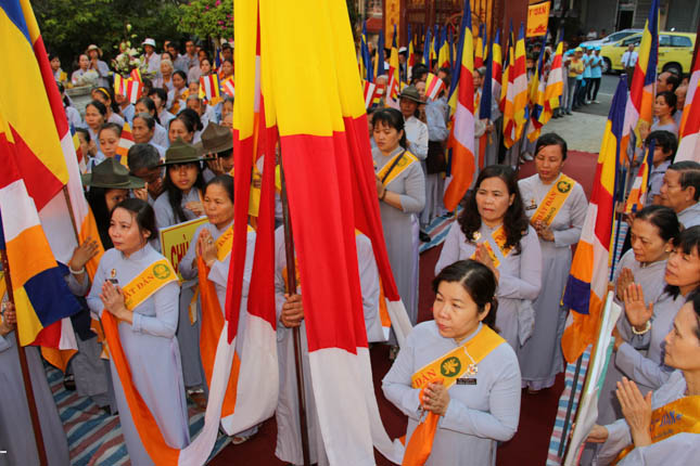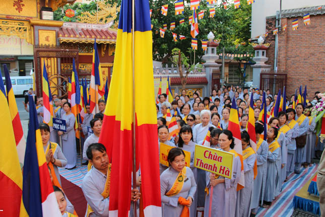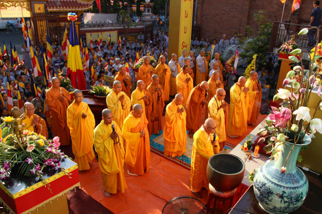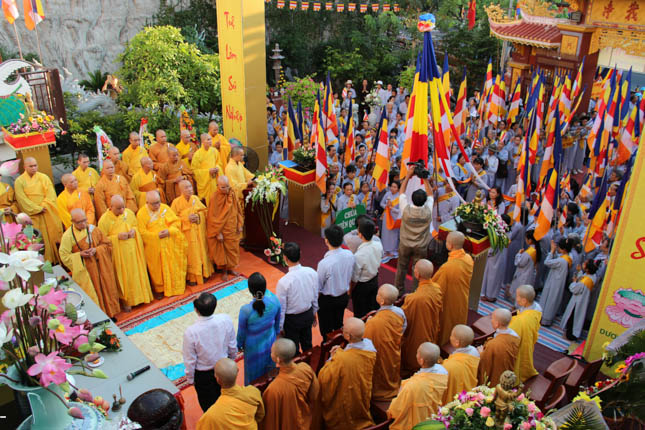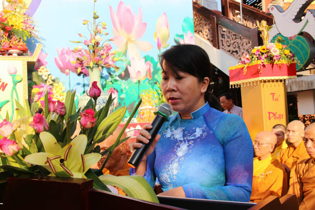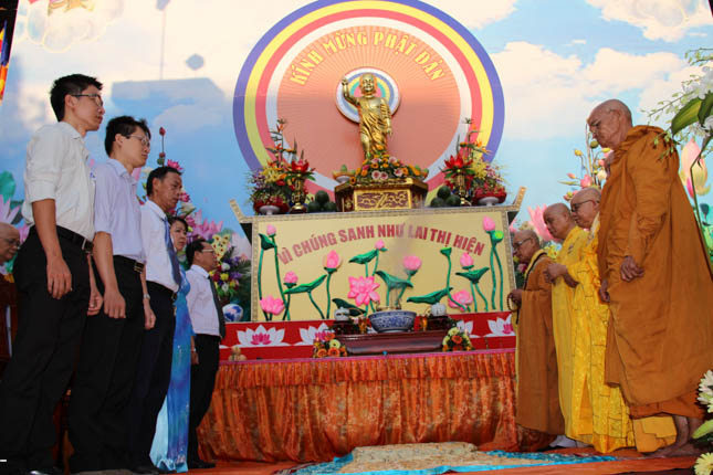Sau phần nghi thức chào Quốc kỳ và Đạo kỳ, HT. Thích Chí Mãn đã tuyên đọc Thông điệp Phật đản của Đức Pháp chủ GHPGVN, TT. Thích Thiện Toàn tuyên đọc Diễn văn khai mạc của Chủ tịch HĐTS GHPGVN. Tiếp theo đó, Chư Tôn đức Tăng Ni và toàn thể đạo hữu Phật tử đã cử hành nghi thức đản sanh.