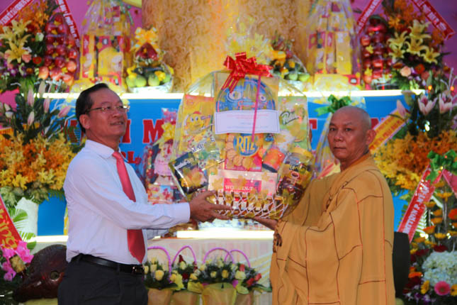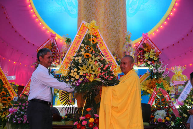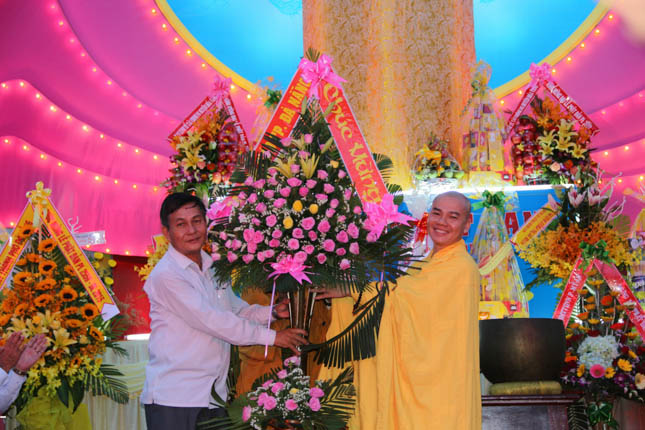 Tham dự buổi lễ, đại diện lãnh đạo các cấp chính quyền cũng có những phần quà, lẵng hoa chúc mừng BTS GHPGVN quận Ngũ Hành Sơn nhân Đại lễ Phật đản PL.2559.