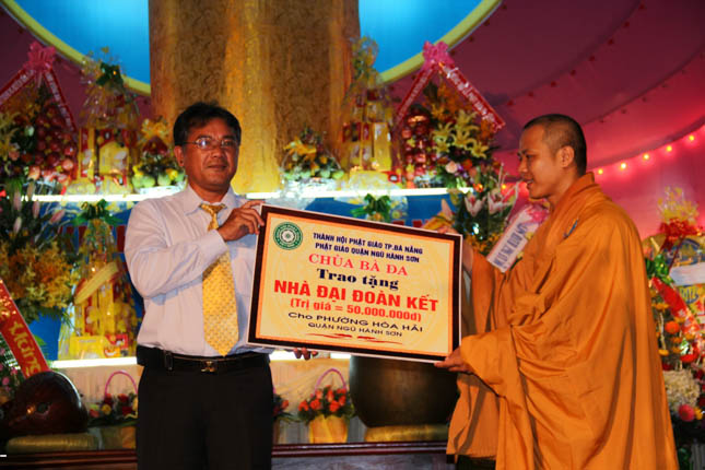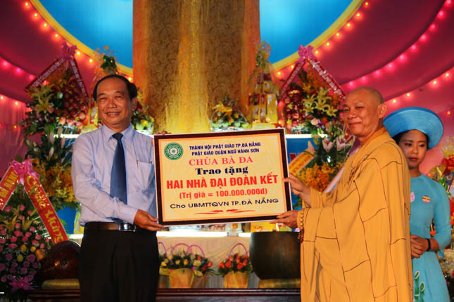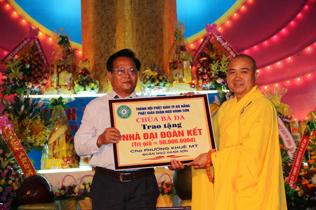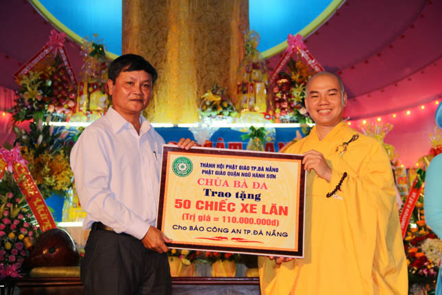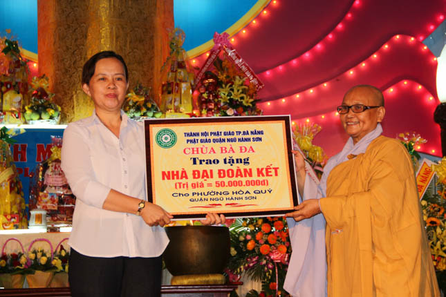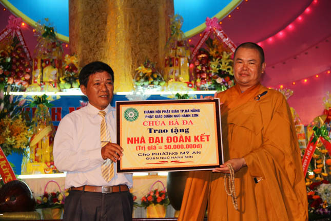 Với hạnh Từ bi của những người con Phật, bằng tinh thần nhập thế, tại buổi lễ chính thức Đại lễ Phật đản PL.2559 của Phật giáo quận Ngũ Hành Sơn, chùa Bà Đa đã phối hợp với BTS GHPGVN quận trao tặng 6 ngôi nhà tình nghĩa và 100 chiếc xe lăn với tổng giá trị lên đến 410 triệu đồng.