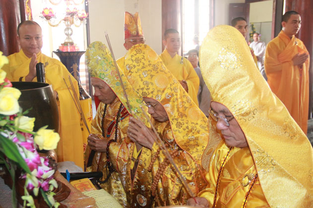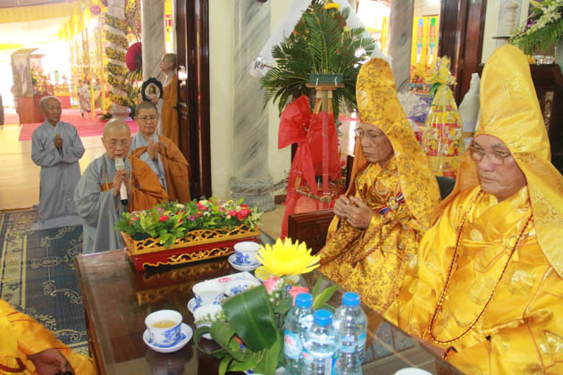 Quang lâm chứng minh lễ khai kinh có HT. Thích Từ Tánh – UV HĐTS GHPGVN, Phó BTS kiêm Trưởng ban GDTN GHPGVN Tp Đà Nẵng; HT. Thích Huệ Thường – Phó BTS GHPGVN Tp Đà Nẵng; HT. Thích Trí Viên – UVTT BTS GHPGVN Tp Đà Nẵng, Trưởng BTS GHPGVN quận Sơn Trà.