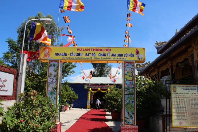 Với tâm nguyện báo đáp Tứ trọng ân, cầu nguyện cho những hương linh đã quá vãng được siêu sanh về miền tịnh cảnh, chùa Huệ Quang (P. Hòa Hải, Q. Ngũ Hành Sơn, Tp Đà Nẵng) đã thiết lập đàn tràng cầu siêu – bạt độ – chẩn tế nhân mùa Vu Lan.