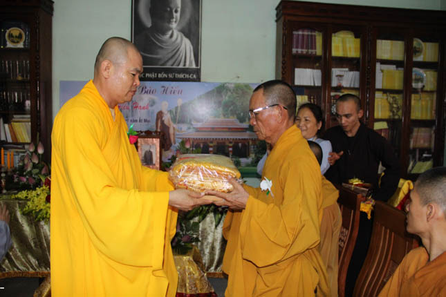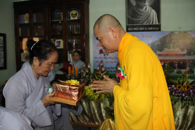 Cũng tại buổi lễ cài hoa hồng hiếu hạnh, ĐĐ. Thích Pháp Châu đã thành kính dâng quà lên đấng song thân, mà thân phụ Đại đức nay cũng là một vị Tỳ Kheo Bồ Tát giới.