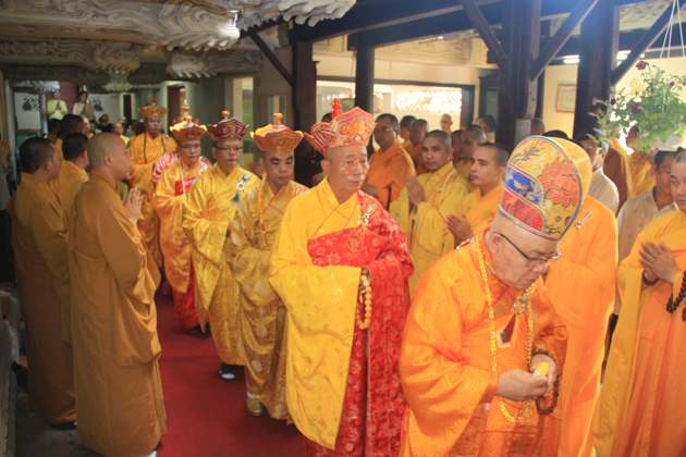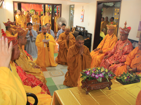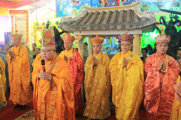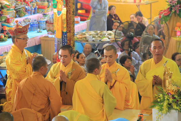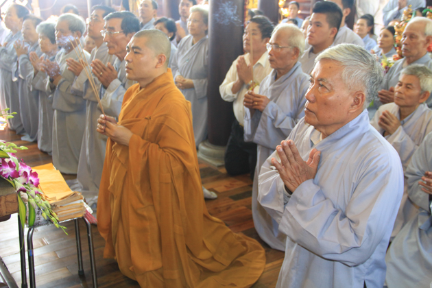 TT. Thích Minh Thành, TT. Thích Viên Thành, ĐĐ. Thích Chúc Tín, ĐĐ. Thích Hạnh Tấn, ĐĐ. Thích Huệ Chấn, ĐĐ. Thích Huệ Phong, ĐĐ. Thích Pháp Châu đương vi sám chủ Thất đàn cùng Chư Đại đức Tăng kinh sư.