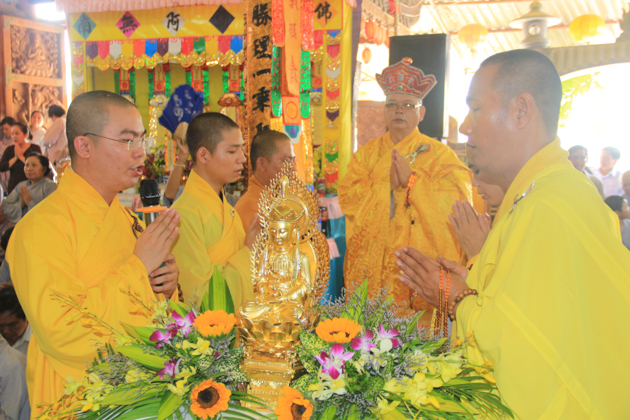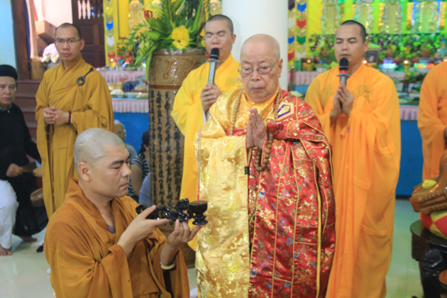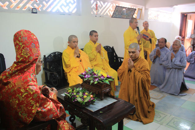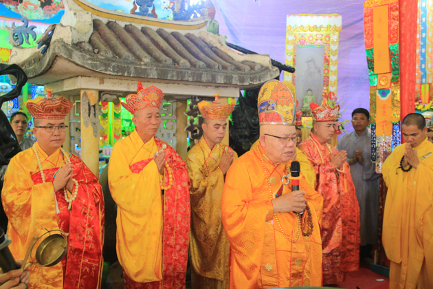 ĐĐ. Thích Đồng Nghĩa – Trưởng ban Kinh tế tài chính BTS GHPGVN quận Hải Châu, Trú trì Chùa An Long đã cung thỉnh HT. Thích Như Thọ – Thành viên HĐCM GHPGVN, CM BTS GHPGVN Tp Đà Nẵng chứng minh Đại Lễ; ĐĐ. Thích Thông Đạo – UV HĐTS GHPGVN, Phó ban kiêm Chánh thư ký BTS GHPGVN Tp Đà Nẵng đương vi sám chủ; ĐĐ. Thích Đồng Nhiên đương vi công văn đại lễ.