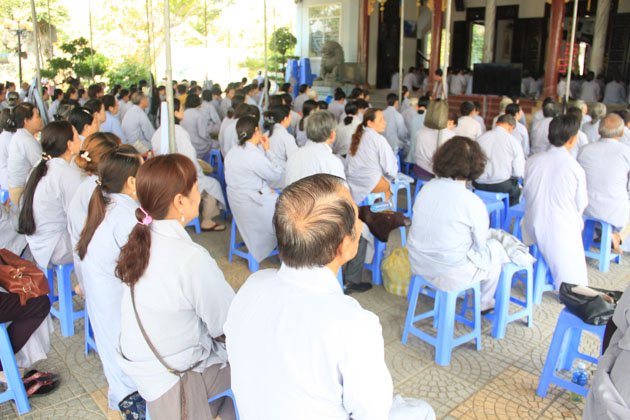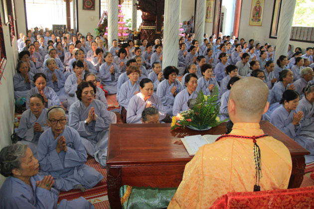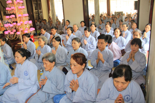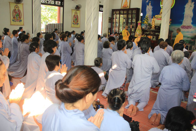 Chiều cùng ngày, Chư Tăng tại bổn tự đã hướng dẫn các giới tử tham dự khóa tu tụng kinh Vô Lượng Thọ.