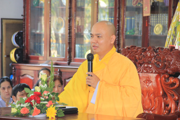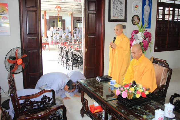 ĐĐ. Thích Thông Đạo – UV HĐTS GHPGVN, Phó ban kiêm Chánh thư ký BTS GHPGVN Tp Đà Nẵng, Trú trì chùa Bà Đa đã quang lâm truyền giới Bát quan trai cho các giới tử tham dự khóa tu.