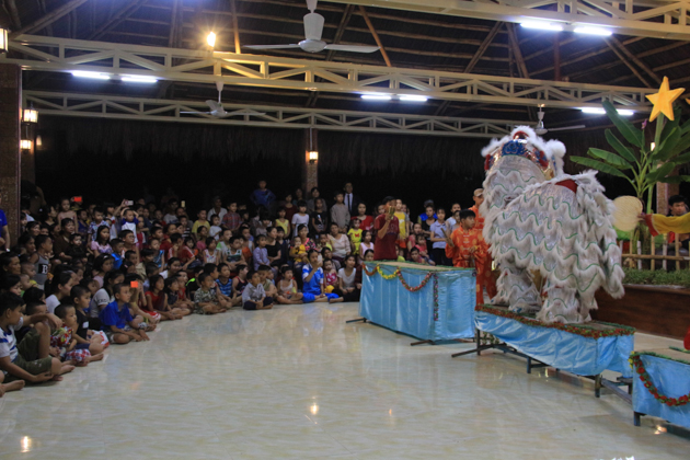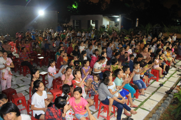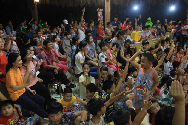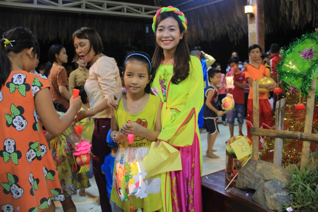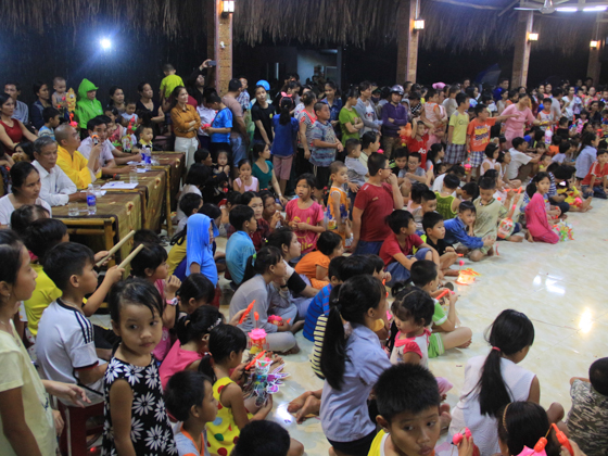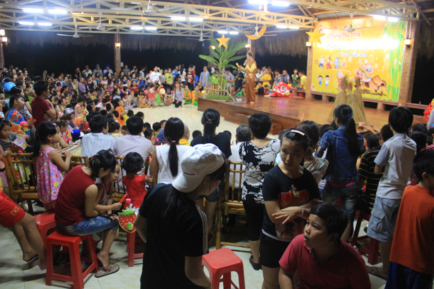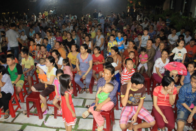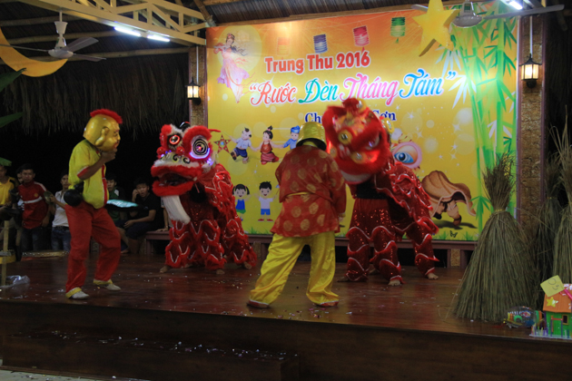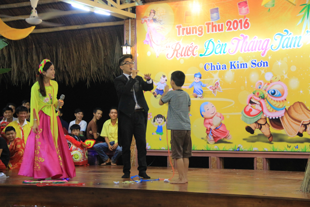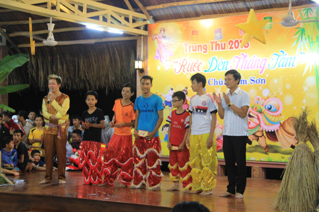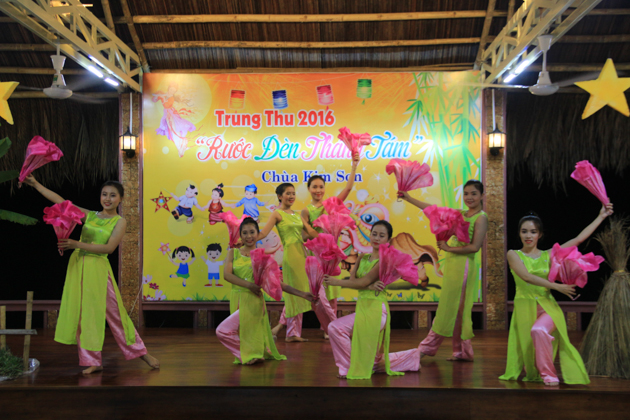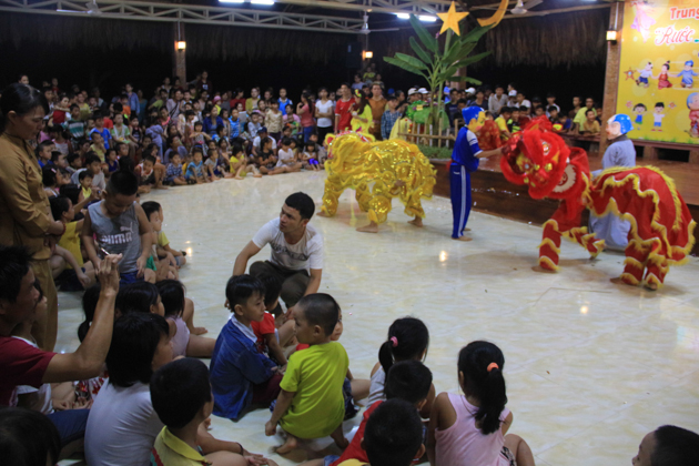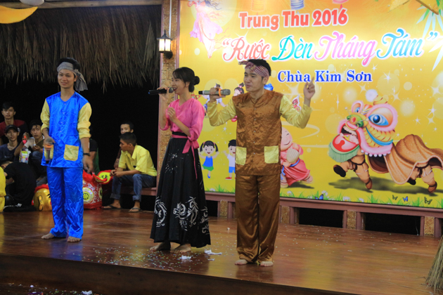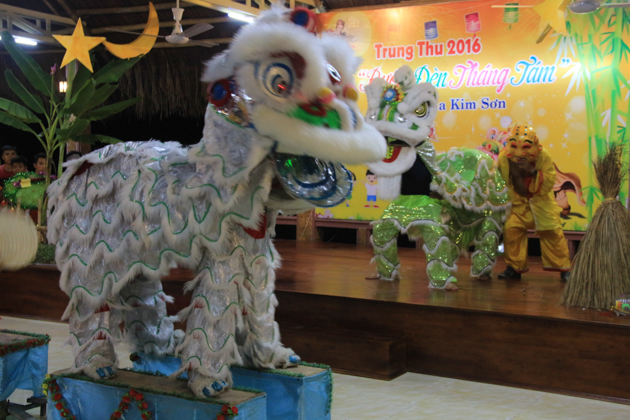 Dù trời mưa lớn sau cơn bão số 4 nhưng hơn 500 trẻ em tại địa phương đã có mặt tại chùa Kim Sơn để tham dự đêm hội. Chú Cuội – Chị Hằng cùng với những màn biểu diễn của 7 đội lân trong phường tham gia thi múa lân, chương trình văn nghệ, biểu diễn ảo thuật và thi lồng đèn đã tạo nên một không khí vui nhộn trong mùa trung thu.