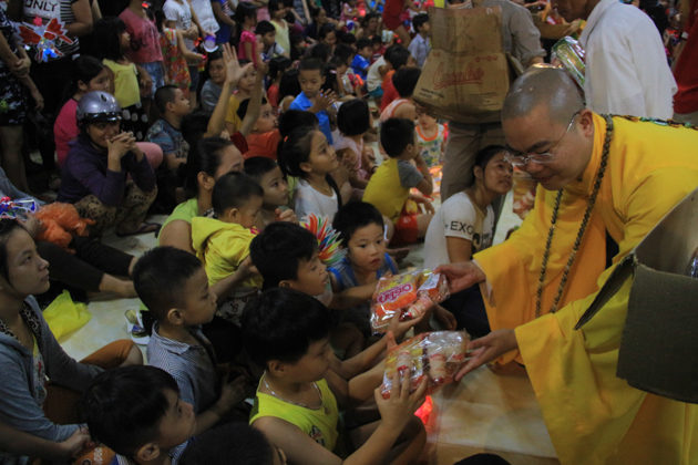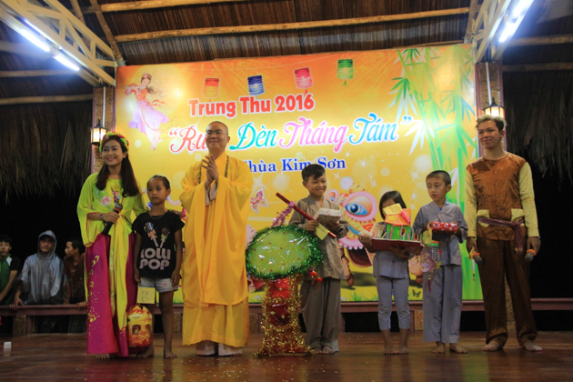 Hơn 500 chiếc lồng đèn và 500 phần bánh trung thu được trao tặng cho các em nhỏ tham dự đêm hội là những món quà tinh thần lớn lao mà ĐĐ. Thích Nguyên An và đạo hữu Phật tử chùa Kim Sơn gửi các em nhỏ tại địa phương.