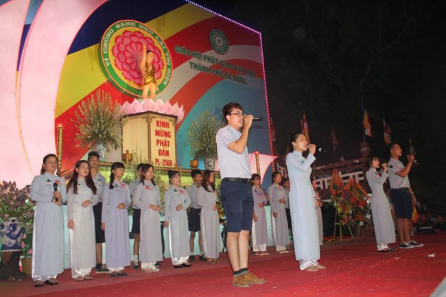 Các tiết mục văn nghệ chủ đề Mừng Phật Đản sanh do đoàn sinh các gia đình Phật tử tại các chùa trong thành phố biểu diễn. Ngoài ra, chương trình còn có sự tham gia của bé Hồng Minh, phật tử chùa Quan Thế Âm, Ngũ Hành Sơn Đà Nẵng vừa đoạt giải quán quân Giọng hát Việt nhí 2015 và tiết mục xiếc ảo thuật vui nhộn.