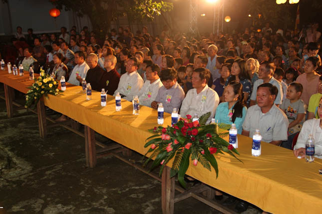 Tham dự đêm văn nghệ có sự hiện diện của ĐĐ. Thích Huệ Đạo – Trú trì chùa Hòa Thọ; ĐĐ. Thích Hải Trí – Phó thư ký BTS GHPGVN quận Cẩm Lệ, Tri sự chùa Hòa Thọ; ĐĐ. Thích Nguyên Lưu – Tăng chúng chùa Phổ Đà; ông Nguyễn Mạnh Hùng – UV Ban Thường vụ Thành ủy, Chủ tịch UBMTTQVN TP Đà Nẵng; ông Lê Văn Sơn – Chủ tịch UBND quận Cẩm Lệ, ông Phạm hồng Thái – Trưởng phòng GDĐT quận Cẩm lệ, bà Nguyễn Thị Hồng Ái – Trưởng phòng VHTT quận Cẩm Lệ cùng đại diện các ban ngành đoàn thể trên địa bàn quận Cẩm Lệ, phường Hòa Thọ Tây, Hòa Thọ Đông và hàng trăm đạo hữu Phật tử.