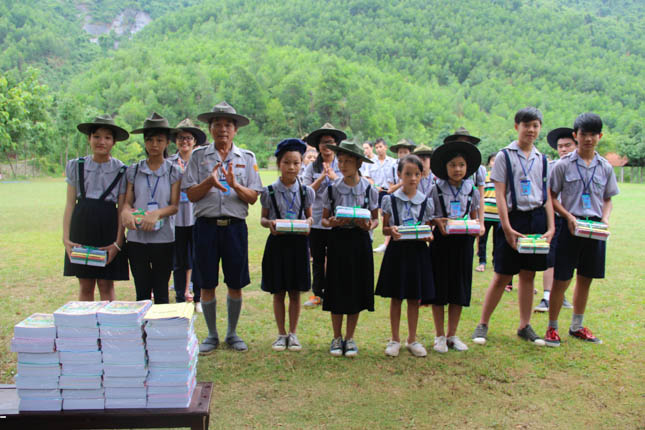 Trong buổi tổng kết bế mạc trại, được sự hổ trợ của đoàn từ thiện Bác sĩ Diệu Ngọc và sự đóng góp của các anh chị Huynh trưởng, BHT GĐPT Viên Quang cũng đã tổ chức trao tặng 10 phần quà đến các đoàn sinh có hoàn cảnh khó khăn trị giá 400.000đ/phần và tặng quà cho các đoàn sinh đạt thành tích học tập tốt tại nhà trường, chuyên cần trong sinh hoạt tu học.