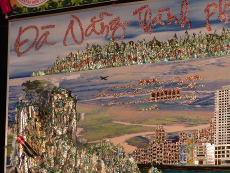 Bức tranh làm bằng vỏ lon có chủ đề về môi trường được đặt làm phông nền sân khấu