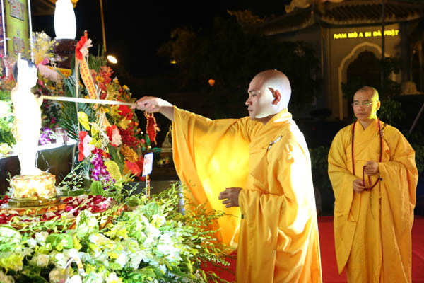 Với ý nghĩa cao đẹp đó, ĐĐ. Thích Thông Đạo – UV HĐTS GHPGVN, Phó ban kiêm Chánh thư ký BTS GHPGVN Tp Đà Nẵng, Trú trì chùa Bà Đa đã có thời pháp thoại ngắn chia sẻ cùng các đạo hữu Phật tử trước khi tiến hành nghi lễ tắm Phật để mọi người hiểu rõ hơn về truyền thống tắm Phật, đồng thời sách tấn đạo hữu Phật tử tu học.