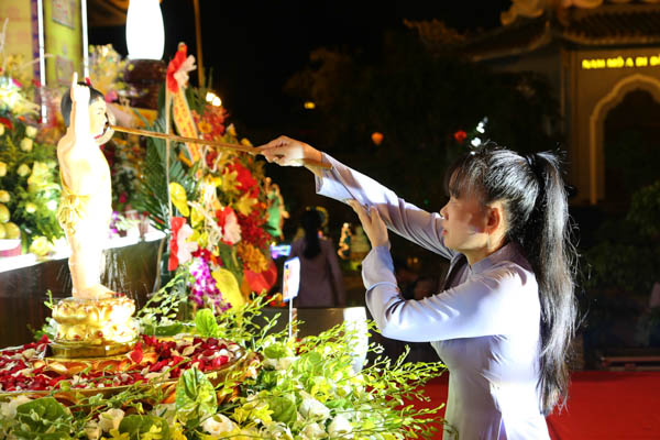 Hơn 1.000 đạo hữu Phật tử đã đến tham dự buổi lễ với tất cả tấm lòng thành kính và trang nghiêm dâng lên Đấng Cha lành của nhân loại nhân ngày Đản sanh.Trước đó, vào buổi sáng, ĐĐ. Thích Thông Đạo đã tổ chức buổi lễ quy y Tam Bảo cho các Phật tử phát nguyện đứng vào hàng ngũ đệ tử Phật, tu học theo lời Phật dạy.