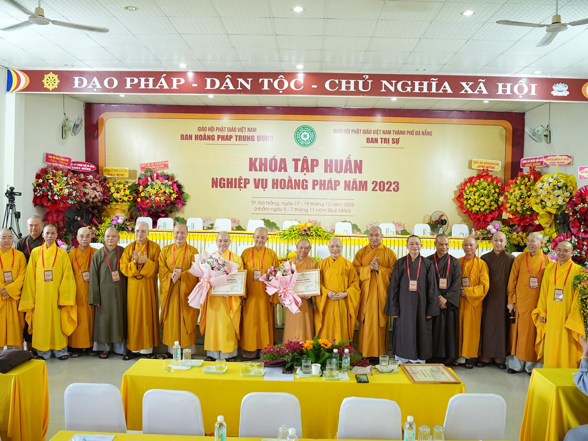 Kết thúc khóa tập huấn, thay mặt Ban Hoằng Pháp Trung ương GHPGVN, Hòa thượng Thích Bảo Nghiêm có lời tán dương toàn thể Ban trị sự GHPGVN thành phố Đà Nẵng đã tận tâm tận lực đóng góp cho sự thành công chung của khóa tập huấn do Ban Hoằng pháp Trung ương tổ chức. Hòa thượng đã trao bằng tuyên dương công đức cho tập thể Ban trị sự GHPGVN Tp Đà Nẵng và cá nhân Hòa thượng Thích Từ Nghiêm – Trưởng Ban trị sự; Thượng tọa Thích Thông Đạo – Phó trưởng ban thường trực Ban trị sự.