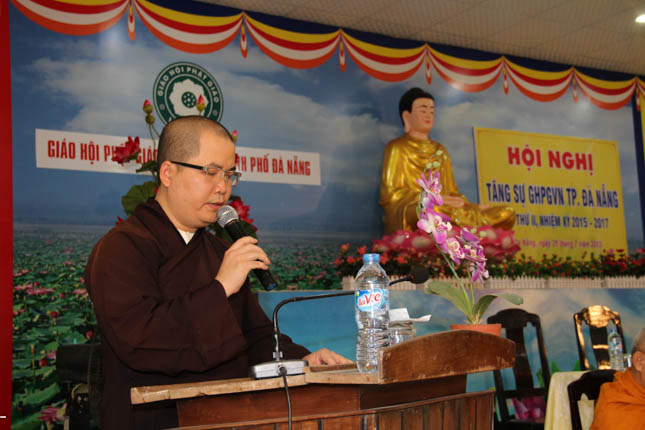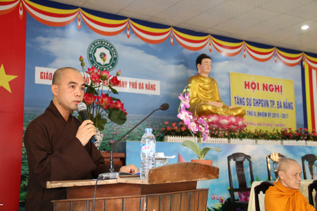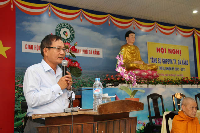 Đại diện các cấp chính quyền, ông Ngô Khôi – Phó Giám đốc Sở Nội vụ, Trưởng Ban Tôn giáo thành phố đã phát biểu chúc mừng những thành tựu mà ngành Tăng sự đã đạt được, ông còn chia sẽ những ý kiến hết sức thiết thực để phát huy vai trò của hàng ngũ Tăng bảo trong sự phát triển chung của xã hội và của Đà Nẵng – một thành phố đáng sống.