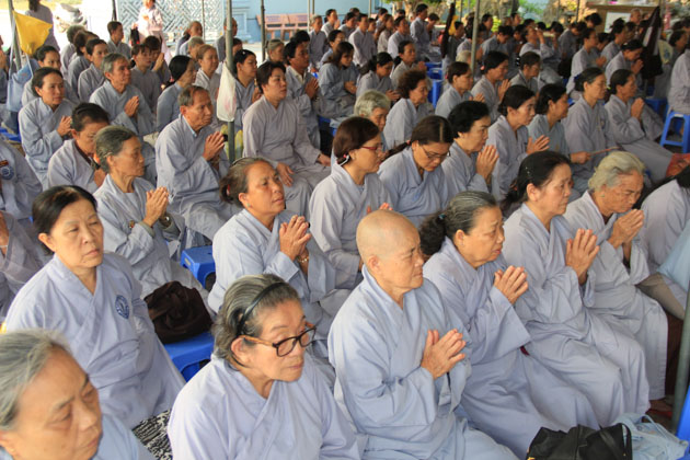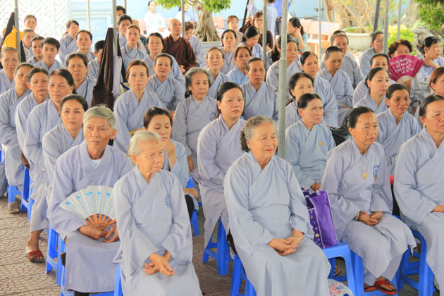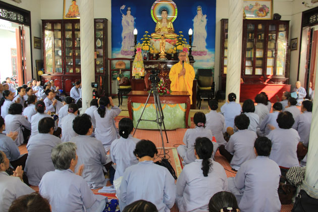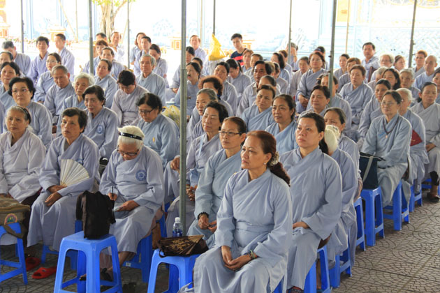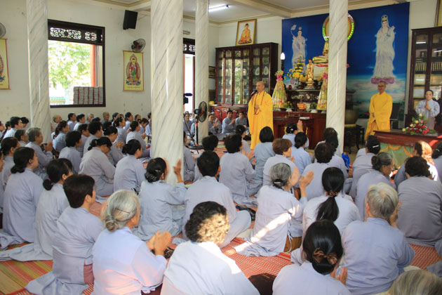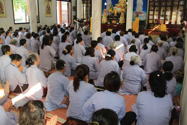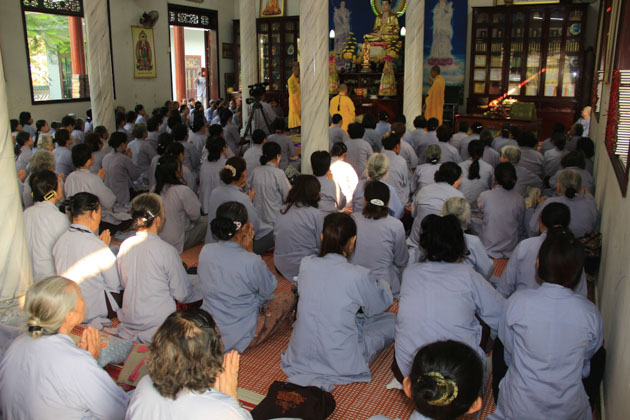 Sau thời pháp của HT. Thích Thiện Bảo, các giới tử được Chư Tăng hướng dẫn quá đường dùng cơm trưa trong chánh niệm. Buổi chiều là thời khóa tụng kinh Vô lượng thọ.