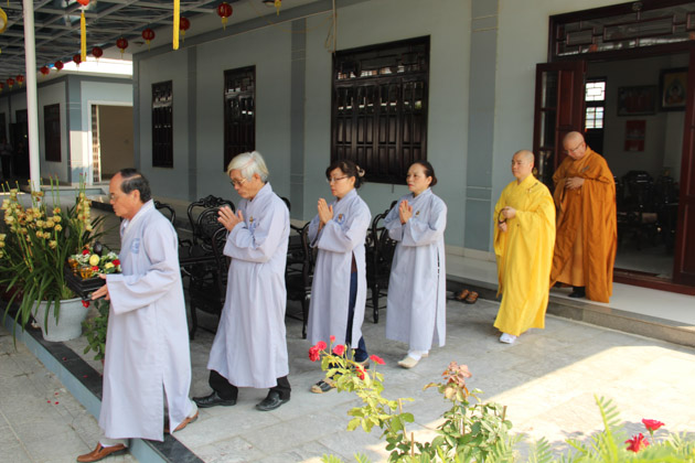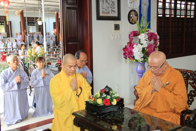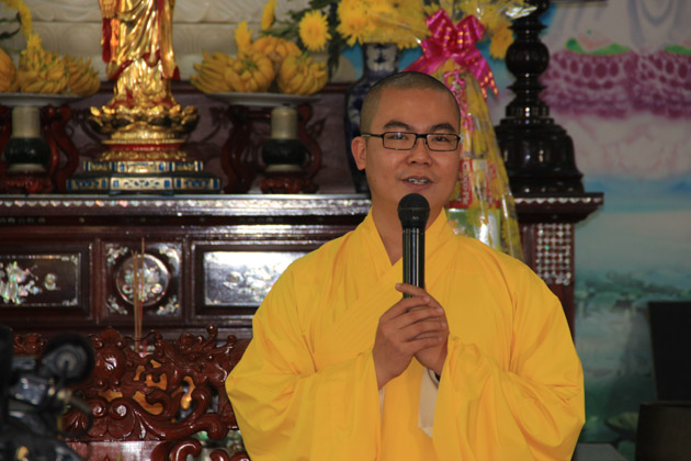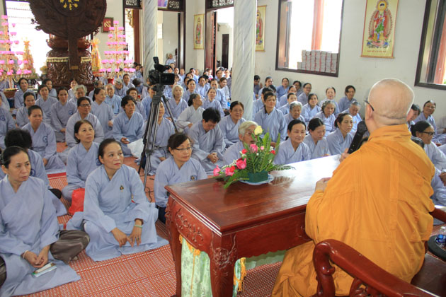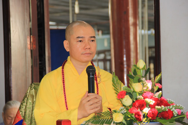 ĐĐ. Thích Thông Đạo – UV HĐTS GHPGVN, Phó ban kiêm Chánh thư ký BTS GHPGVN Tp Đà Nẵng, Trú trì chùa Bà Đa đã truyền giới Bát quan trai cho các giới tử tham dự khóa tu.