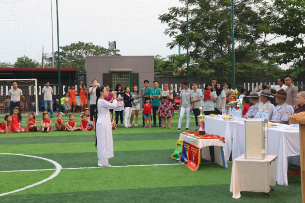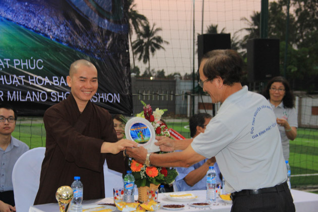 Sau lời tuyên bố khai mạc của anh Lê Hà Thọ và lời tuyên thệ của đại diện các đội bóng, trọng tài. ĐĐ. Thích Thông Đạo đã có đạo từ chúc mừng giải và mong muốn các đội bóng tham gia thi đấu cao thượng trên tinh thần vui vẻ vì mục đích cao đẹp của giải.