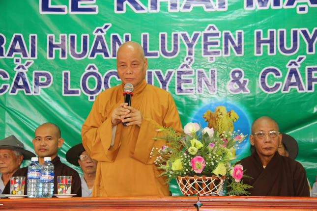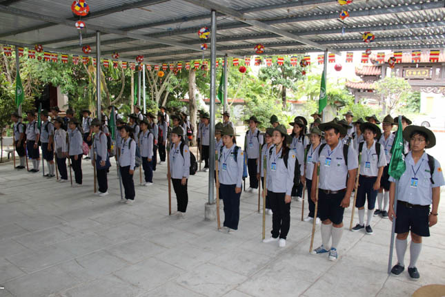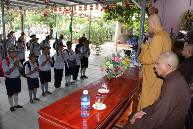 Toàn thể Ban quản trại và trại sinh đã thành kính lắng nghe đạo từ của TT. Thích Thiện Toàn. Thượng tọa nhắc nhở các anh chị em huynh trưởng phải làm thế nào để thực hiện đúng lời phát nguyện như bài ca Sen Trắng “Đồng thệ nguyện một dạ đồng lòng theo Phật. Nguyện sửa mình ngày thêm tinh khiết”.