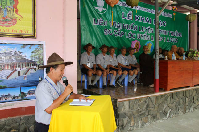 Phát biểu tại buổi lễ khai mạc trại, HTr cấp Dũng Thị Sơn Huỳnh Ngọc Lâm đã sách tấn động viên các Huynh trưởng Ban quản trại và các trại sinh đã vì tổ chức hy sinh thời gian, công việc tham dự trại. Anh hy vọng những huynh trưởng traị sinh sẽ thu hoạch được nhiều điều trong đợt trại để về xây dựng đơn vị, xây dựng tổ chức GĐPT.