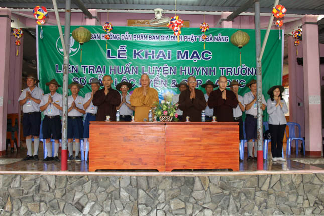 Vào lúc 16h00 cùng ngày, lễ khai mạc trại đã chính thức diễn ra dưới sự quang lâm chứng minh của TT. Thích Thiện Toàn – UVHĐTS GHPGVN, Phó trưởng ban TT BHDPT TƯ, Phó BTS GHPGVN Tp Đà Nẵng, Trưởng ban HDPT GHPGVN Tp Đà Nẵng; TT. Thích Huệ Chỉnh – UVTT BTS GHPGVN Tp Đà Nnăgx, Trưởng BTS GHPGVN quận Cẩm Lệ; ĐĐ. Thích Thông Huệ – UV BTS GHPGVN Tp Đà Nẵng, Phó BTS GHPGVN quận Cẩm Lệ, Trú trì chùa Huệ Quang; ĐĐ. Thích Hải Trí – Phó thư ký BTS GHPGVN quận Cẩm Lệ.