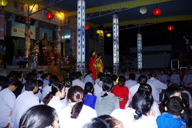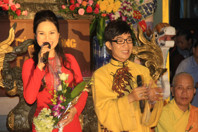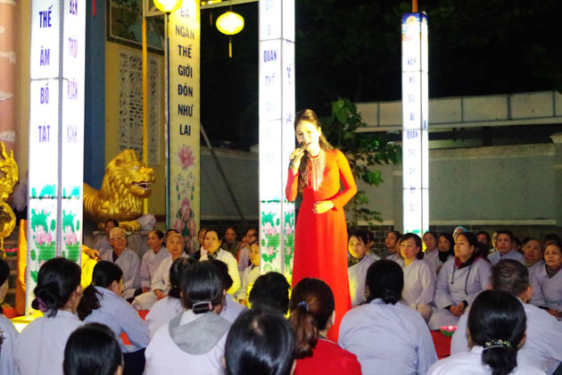 Tham dự đêm hoa đăng tại chùa Hòa Thọ còn có ca sĩ Nguyễn Đức, ca sĩ Thùy Trang, bé Quỳnh Anh, Phật tử Quang Thuận biểu diễn cúng dường đại lễ.