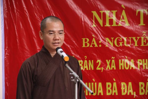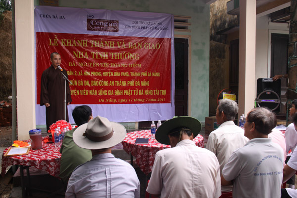 Phát biểu tại buổi lễ, ĐĐ. Thích Thông Đạo đã tán thán tấm lòng của GĐPT Đà Nẵng, Đội TNV máu sống GĐPT Đà Nẵng cùng các nhà hảo tâm, các đội bóng đã chung tay đóng góp xây dựng cho chị Diễm ngôi nhà tình nghĩa khang trang, giúp gia đình có điều kiện an cư để lạc nghiệp.