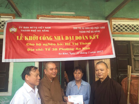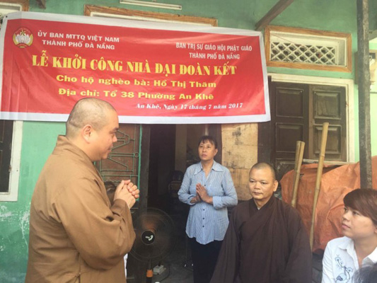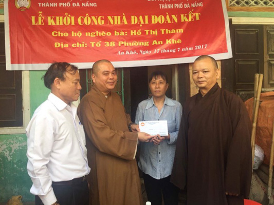 Chiều cùng ngày, BTS GHPGVN Tp Đà Nẵng phối hợp với UBMTTQVN Tp Đà Nẵng đã tổ chức lễ khởi công xây dựng nhà tình nghĩa cho hộ bà Hồ Thị Thắm – Trú tại tổ 38, phường An Khê, quận Thanh Khê, Tp Đà Nẵng.
