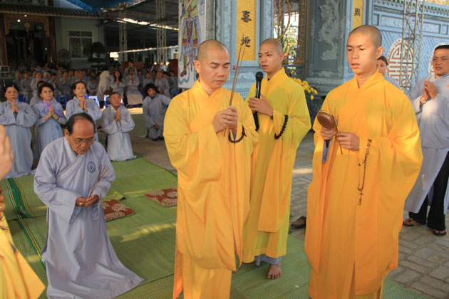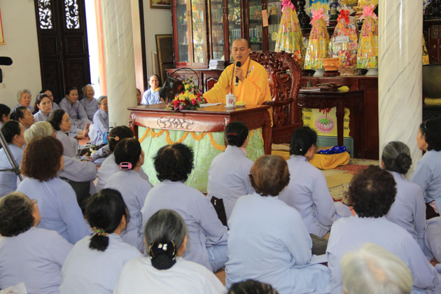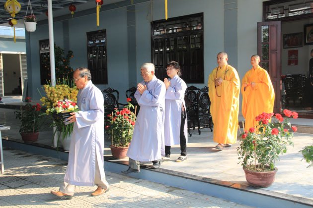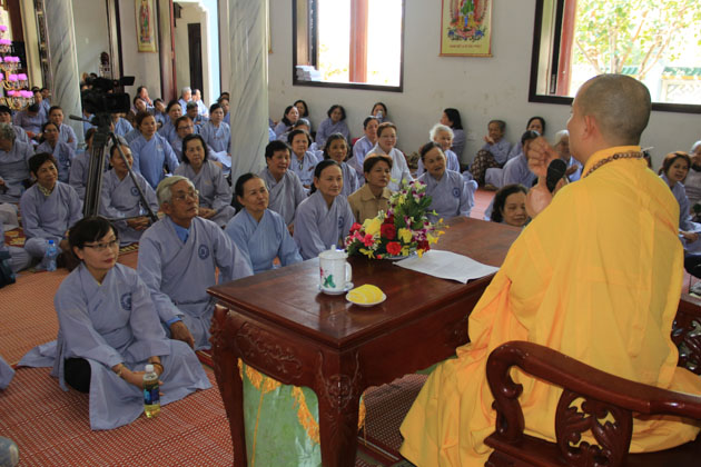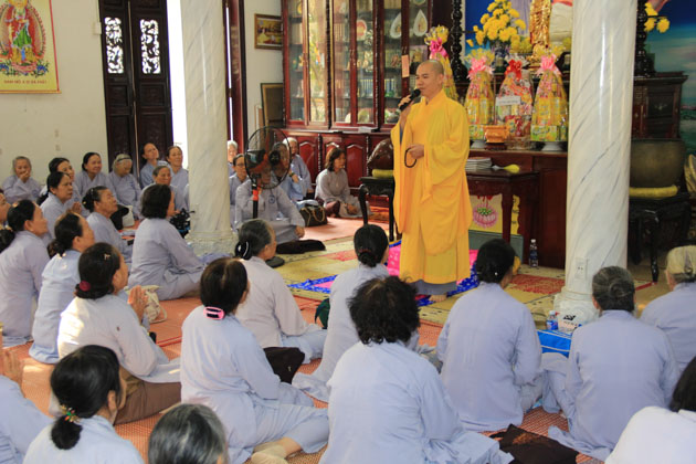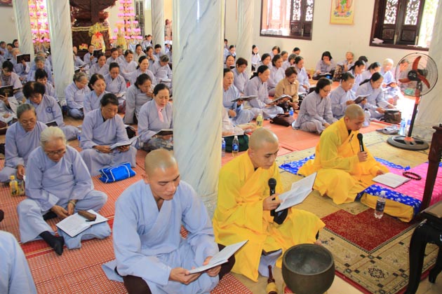 Buổi chiều, cac giới tử được Chư Tăng hướng dẫn tụng kinh Dược sư, sau đó ĐĐ. Thích Thông Đạo – UV HĐTS GHPGVN, Phó ban kiêm Chánh thư ký BTS GHPGVN Tp Đà Nẵng, Trú trì chùa Bà Đa đã có buổi nói chuyện ngắn cùng các giới tử, cầu chúc quý đạo hữu Phật tử một năm mới vô lượng cát tường, Phật sự viên thành.