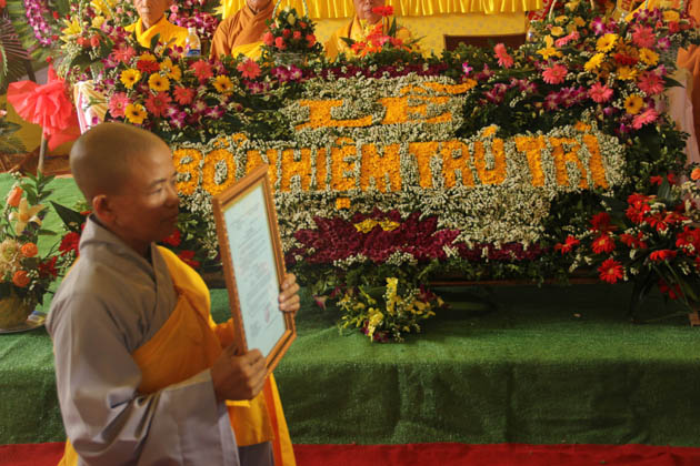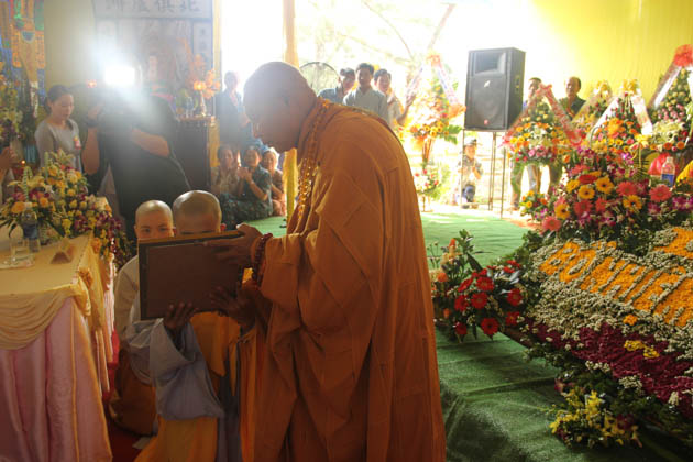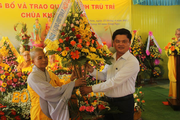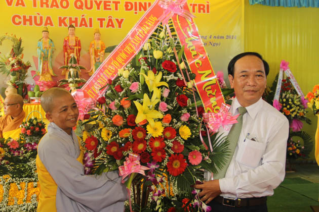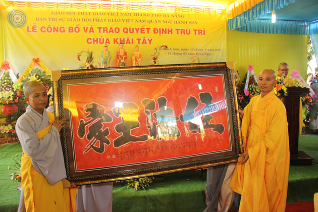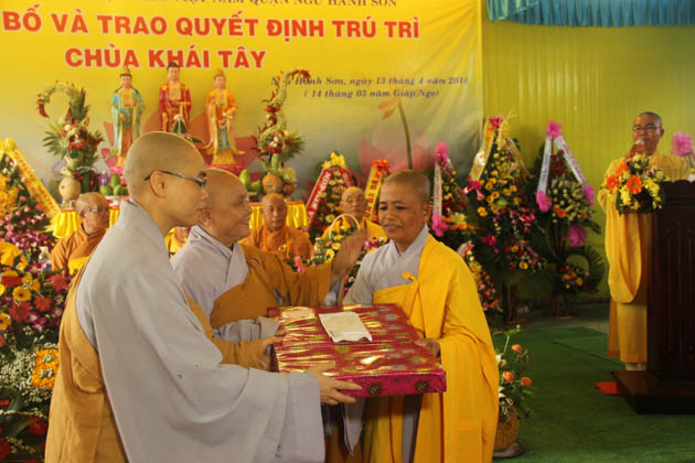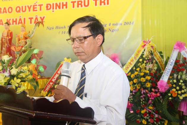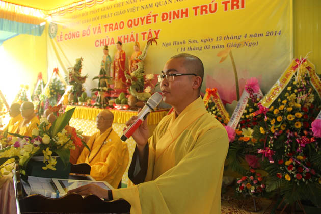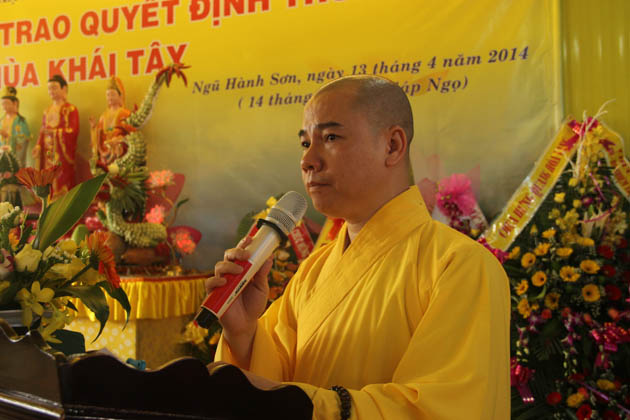 ĐĐ. Thích Thông Đạo – UV HĐTS GHPGVN, Phó BTS kiêm Chánh thư ký BTS GHPGVN Tp Đà Nẵng đã thay mặt BTS công bố quyết định bổ nhiệm Sư cô Thích Nữ Tuệ Vi đảm nhiệm trú trì chùa Khái Tây.