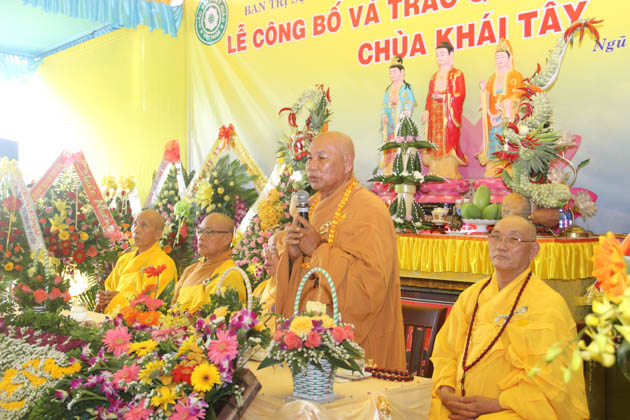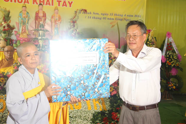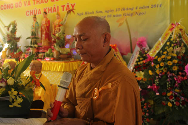 Trong bài phát biểu khai mạc, TT. Thích Huệ Vinh – UV BTS GHPGVN Tp Đà Nẵng, Trưởng BTS GHPGVN quận Ngũ Hành Sơn đã nhắc lại quá trình hình thành và phát triển của chùa Khái Tây.
