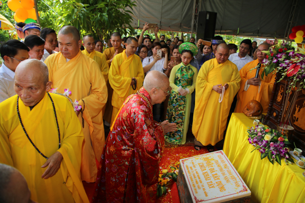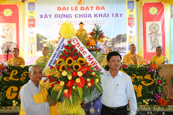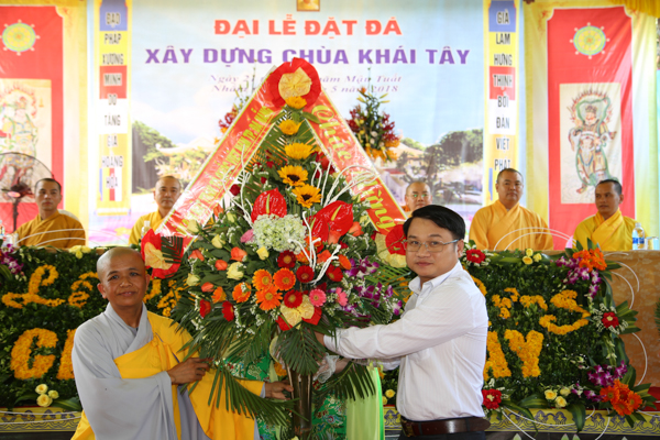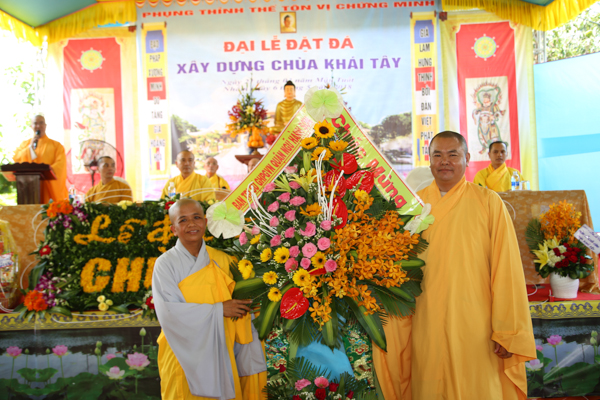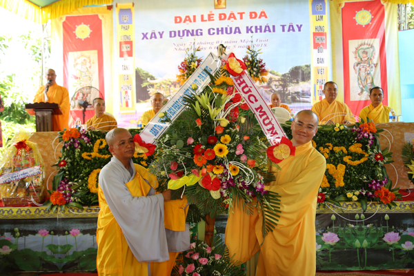 HT. Thích Trí Viên đã thay mặt Chư Tôn giáo phẩm Chứng minh ban đạo từ tán thán Sư cô trú trì cùng Ban hộ tự, đạo hữu Phật tử đã phát đại bồ đề tâm trùng kiến ngôi Tam Bảo. Hòa thượng cũng kêu gọi Chư Tôn đức Tăng Ni, thập phương thiện tín phát tâm cúng dường để ngôi chùa Khái Tây sớm được thành tựu.