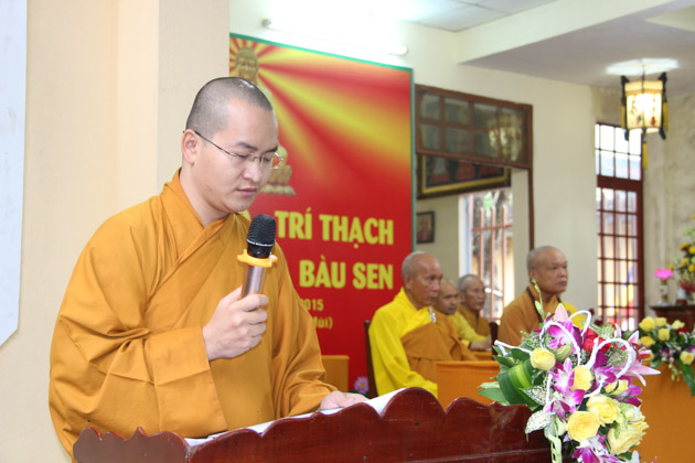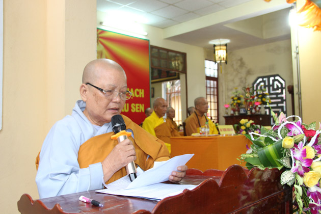 Trong không khí trang nghiêm, với niềm hân hoan của ngày trọng đại, SC. Thích Nữ Tịnh Minh – Trú trì chùa Bàu Sen đã xúc động tuyên đọc diễn văn khai mạc ôn lại quá trình hình thành ngôi chùa Bàu Sen.