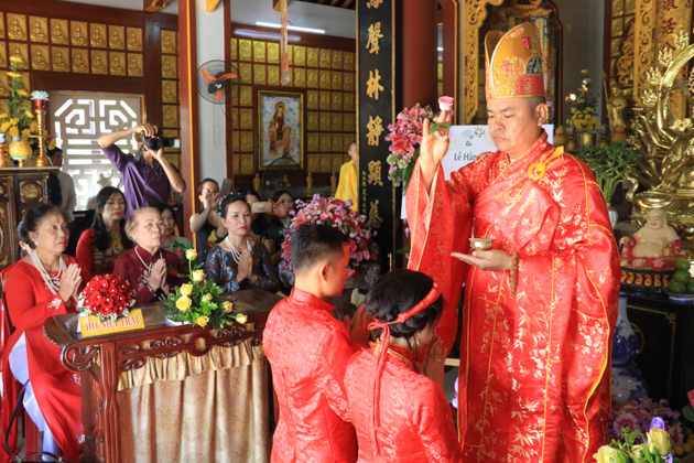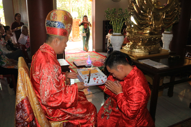 Sau nghi lễ cầu an cho đôi tân lang tân nương và bà con hai họ, ĐĐ. Thích Pháp Châu đã có thời pháp thoại ngắn giúp cho đôi bạn trẻ bắt đầu bước vào ngưỡng cửa hôn nhân hiểu được bổn phận làm vợ, làm chồng.