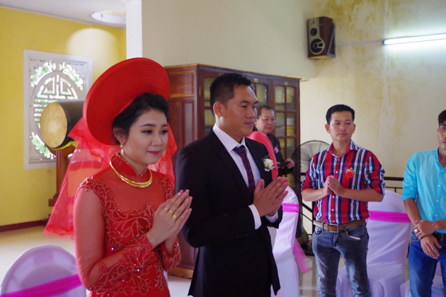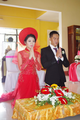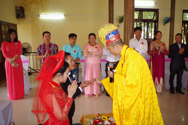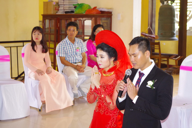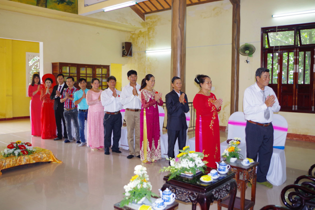 Tham dự buổi lễ hằng thuận còn có sự hiện diện của bà con hai họ cùng bạn bè thân hữu của cô dâu và chú rể.