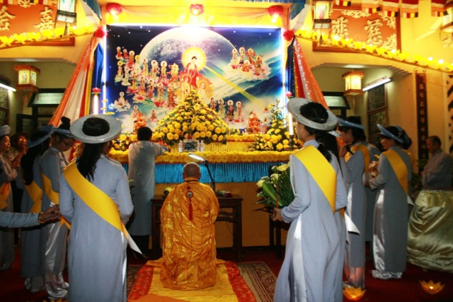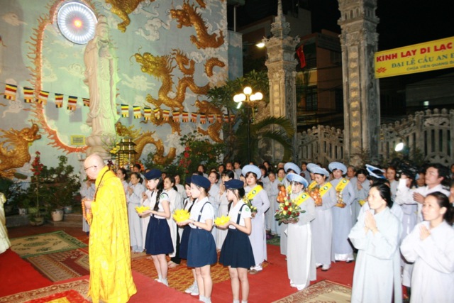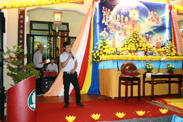 Trong diễn văn chào mừng của Đạo hữu Như Tài Trương Xuân Thọ, Trưởng ban hộ tự chùa Viên Quang đã nêu lại những hạnh nguyện sâu dày của Đức Phật A Di Đà. Sau phần diễn văn chào mừng, GĐPT Viên Quang đã dâng hoa cúng dường Tam Bảo.
