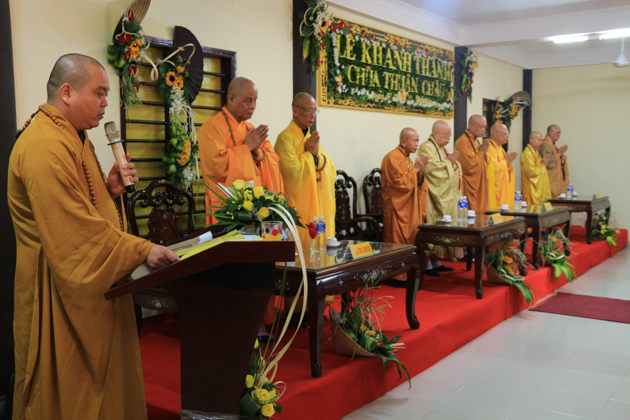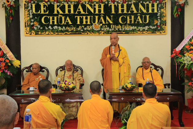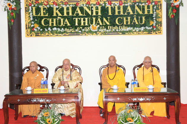 Trong lời diễn văn khai mạc, ĐĐ. Thích Khánh Chơn – Trú trì chùa Thuận Châu đã tỏ lòng tri ân Chư Tôn đức Tăng Ni, quý vị lãnh đạo chính quyền và đạo hữu Phật tử đã quang lâm tham dự lễ khánh thành chùa. Sau 4 năm khởi công xây dựng với tổng kinh phí 8,5 tỷ đồng, đến nay ngôi phạm vũ Thuận Châu đã cơ bản hoàn thành khang trang để Tăng chúng và đạo hữu Phật tử có nơi tu học, lễ bái trang nghiêm.