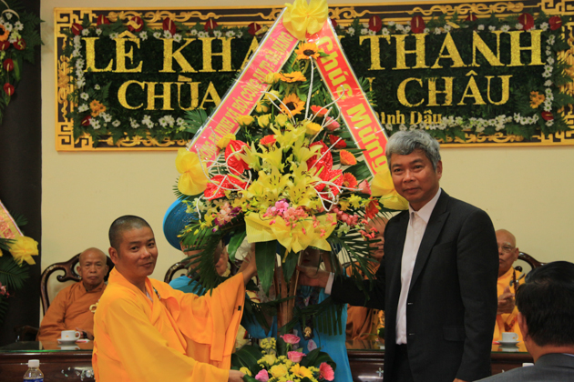 Đại diện lãnh đạo các cấp chính quyền có ông Lê Tự Mai – Đại diện Ban nội chính Thành ủy Đà Nẵng; ông Ngô Khôi – Phó giám đốc Sở Nội vụ, Trưởng ban tôn giáo Tp Đà Nẵng; ông Vương Văn Quý – Phó trưởng phòng ANXH Công an Tp Đà Nẵng cùng lãnh đạo các ban ngành đoàn thể Quận Hải Châu và phường Nam Dương cùng đông đảo các đạo hữu Phật tử, các đạo tràng thuộc các chùa trên địa bàn Tp cũng đã về tham dự buổi lễ khánh thành.