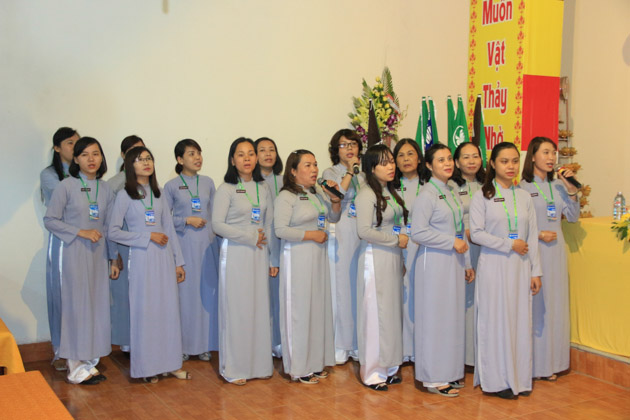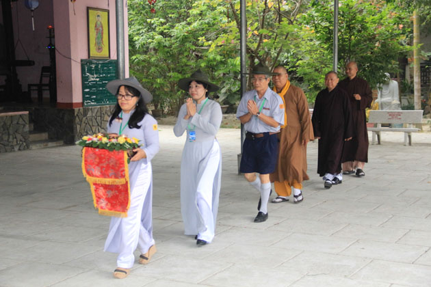 Tham dự buổi lễ còn có sự hiện diện của HTr cấp Dũng Thị Sơn Huỳnh Ngọc Lâm – Trưởng Ban hướng dẫn Phân ban GĐPT Đà Nẵng; các anh chị thường trực Ban hướng dẫn Phân ban GĐPT Đà Nẵng; đại diện lãnh đạo chính quyền phường Hòa An; Ban hộ tự chùa Huệ Quang; các đơn vị GĐPT trên địa bàn Tp; phụ huynh đoàn sinh và gần 100 huynh trưởng – đoàn sinh GĐPT Huệ Quang