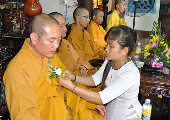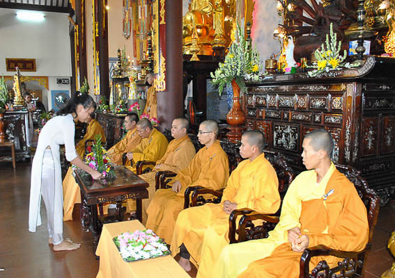 Tiếp theo là Lễ dâng lục cúng dường do các em Phật tử chùa Hưng Quang thể hiện. Phật tử Phan Thị Hồng PD: Nhuận Hạnh đọc ý nghĩa bông hồng cài áo. Các Phật tử lần lượt cài hoa lên Chư Tăng và Quý Phật tử tham dự. Đạo hữu Tán Giản PD: Chúc Thi, Trưởng Ban Hộ Tự chùa Hưng Quang dâng lời tác bạch cúng dường dâng y lên Chư Tăng, khánh tuế Quý Thầy chuẩn bị nhận thêm một tuổi Hạ sau Lễ Tự Tứ. Lần lượt quý Phật tử đâng y lên cúng dường Chư Tăng.