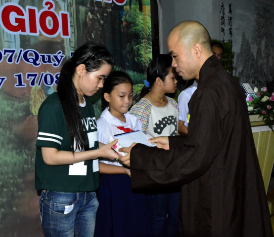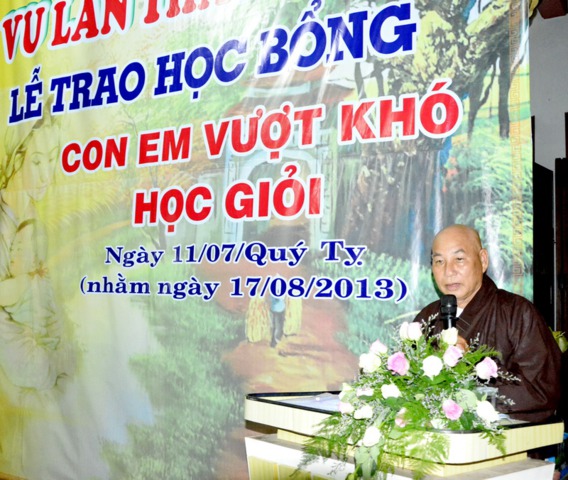 Phát biểu sau khi trao tặng các suất học bổng tiêu biểu cho các em, HT Thích Thiện Nguyện đã tán than công đức của đồng bàp Phật tử và Tăng ni trong quận Hải Châu đã có hành động thiết thực trong hai năm qua, cứ mỗi mùa vu lan về Chư Tôn đức lại nhớ đến hoàn cảnh khó nhọc của các Sinh viên, học sinh để chia sẽ, giáo dục các em gương hiếu thảo với ông bà, cha mẹ và cố gắng học hành luôn xứng đáng là con ngoan, trò giỏi mai sau góp phần giúp ích nước nhà.