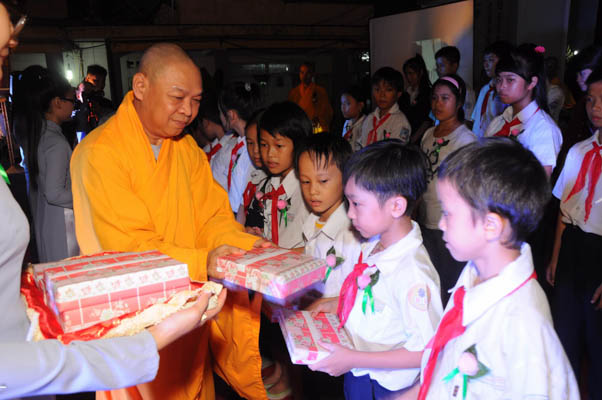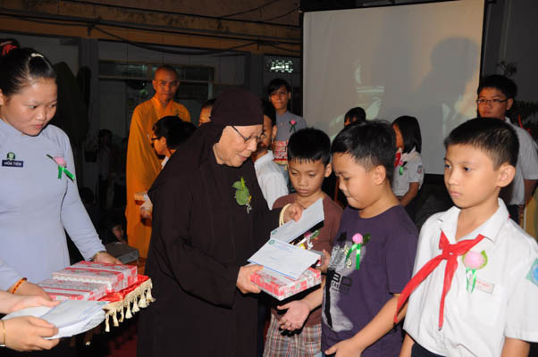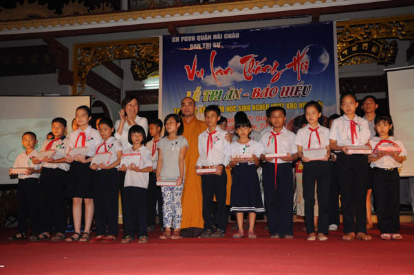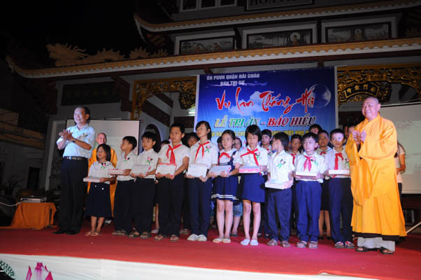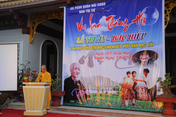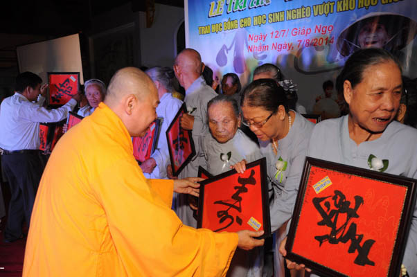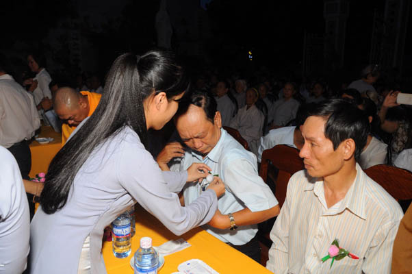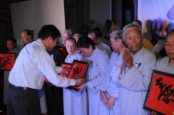 Tại buổi lễ, Chư Tôn đức BTS GHPGVN quận Hải Châu đã trao tặng quà mùa Vu Lan đến các cụ Người Cao tuổi như một lời chúc thọ.